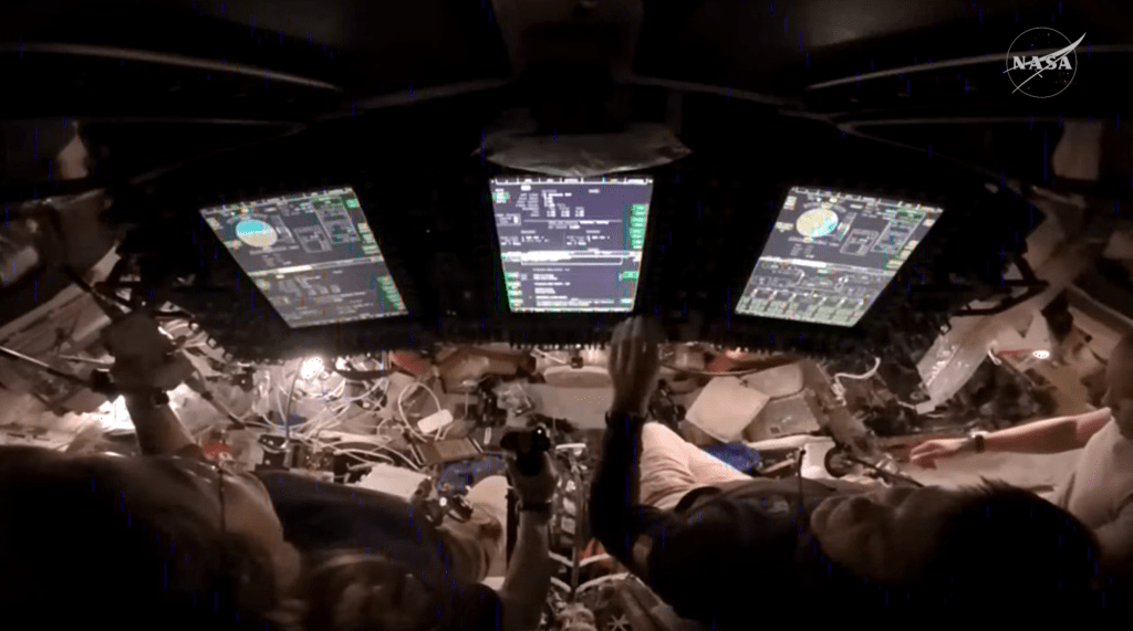 The crew earlier tested their ability to take manual control of the spacecraft, and reported no problems with the test.